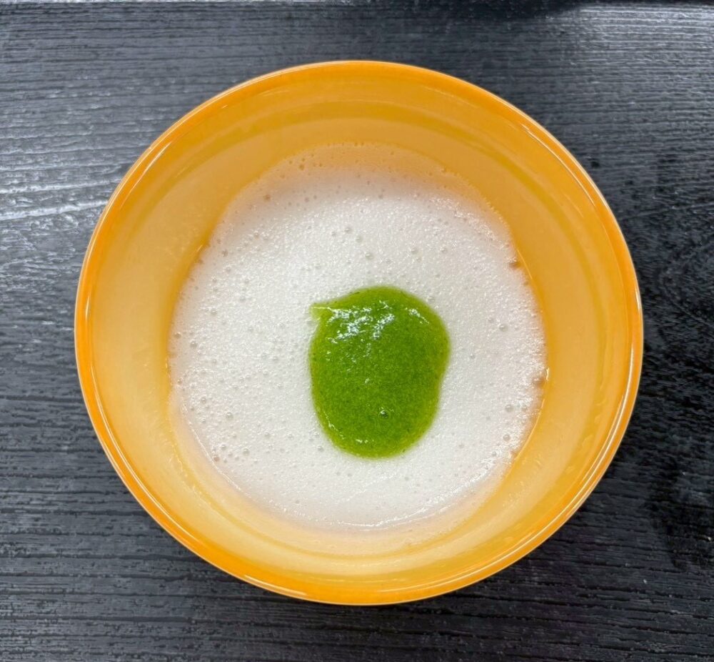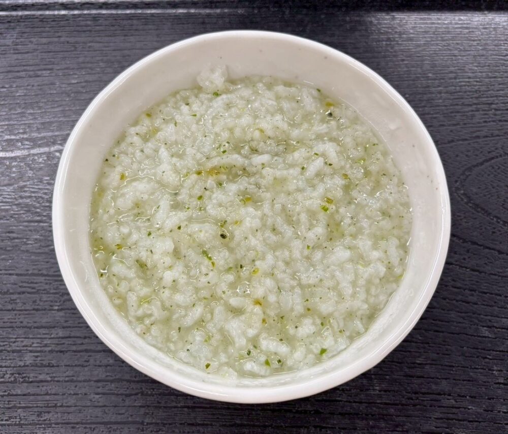 七草のほろ苦さと甘味が、お正月で疲れた体にやさしく沁みます。ミキサー食には、七草をペースト状にしてゼリー粥の上に乗せています。